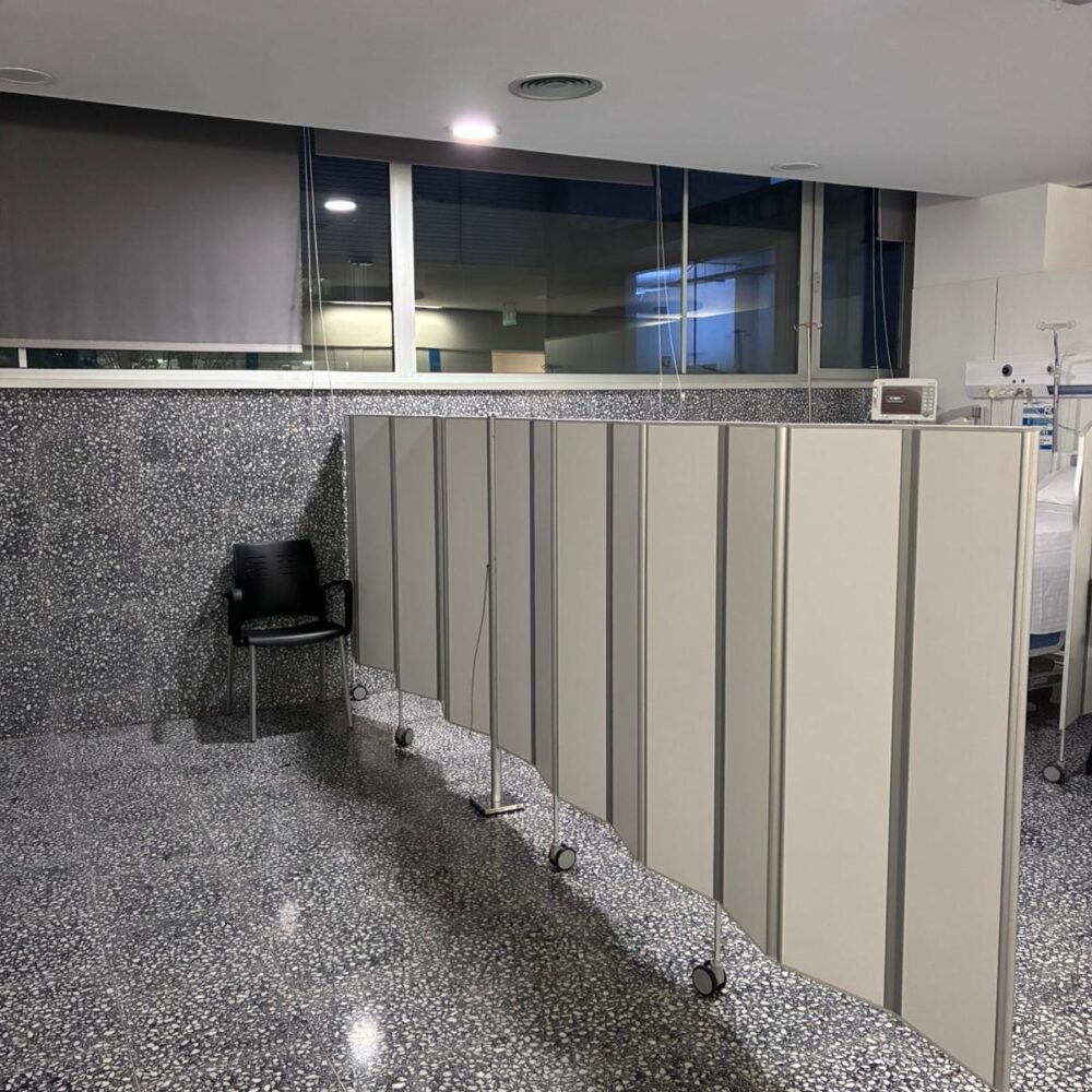 La instalación del Sistema de separación de espacios PRIVY responde a esta necesidad, permitiendo crear áreas diferenciadas dentro de la unidad sin recurrir a estructuras fijas, lo que facilita la adaptación del espacio a diferentes situaciones clínicas.